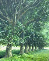 June 20, 2002. Sunset tree. Painting completed by Pierre Marcel on above listed date. The "Guerny Trees" series