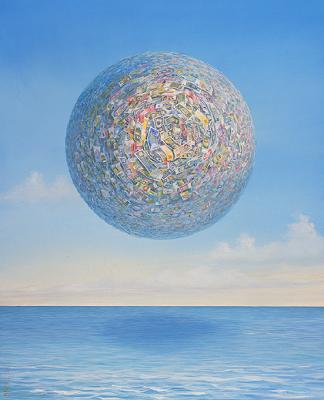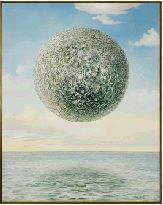 This extraordinary image ricochets within our minds like a loose cannon aboard a ship. Seductive in it's simplicity, it indicates that the pull of money rivals gravity in it's power. It suggests that greed can fill a personal horizon, as the image fills the painting. It hints of a lunar god of currency as composed and sedate as any other god.